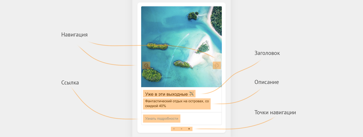- Каждому слайду можно добавить индивидуальный заголовок, описание и ссылку
