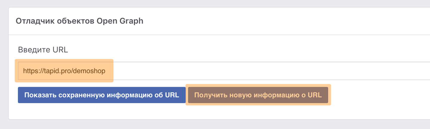 - Вставьте ссылку на ваш сайт и нажмите Получить новую информацию о URL