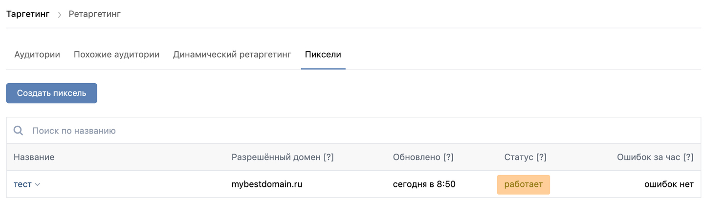 - Выберите вкладку Пиксели и нажмите кнопку Создать пиксель