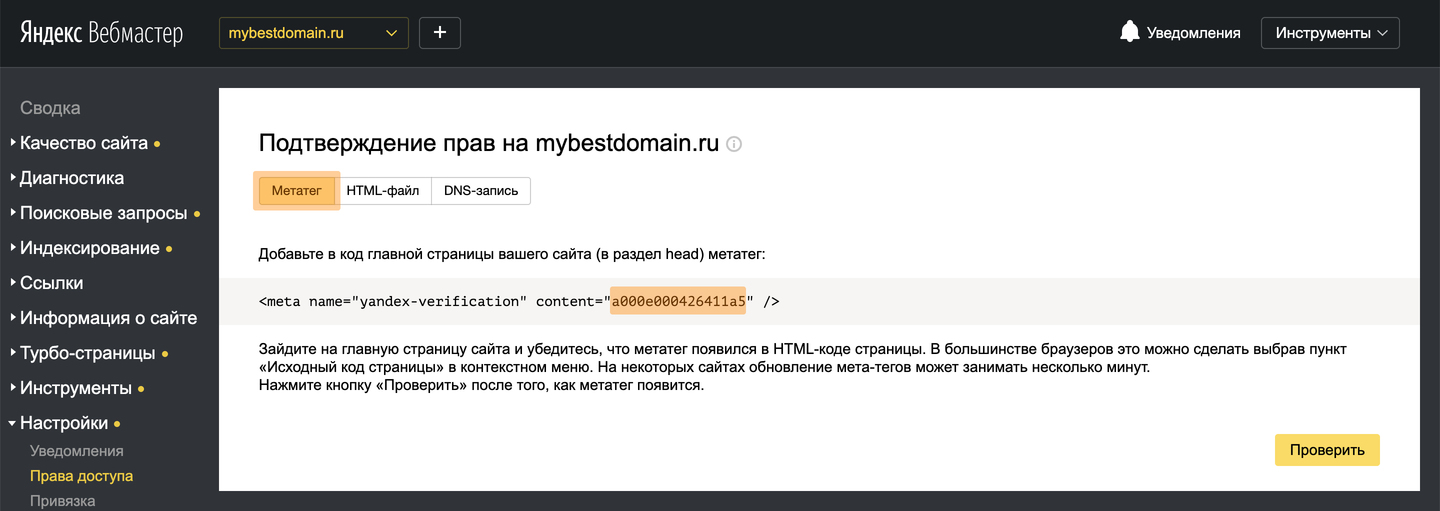 Вернитесь в Яндекс.Вебматер и нажмите кнопку Проверить.
