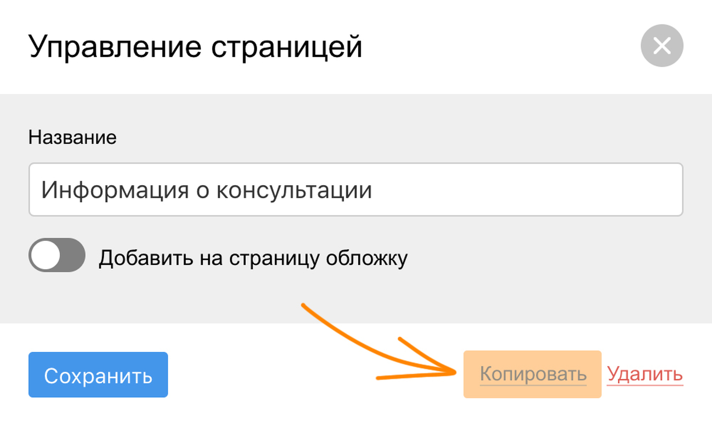 Бывают случаи когда требуется создать несколько страниц с похожим оформление и/или содержанием. Чтобы вам не приходилось каждый раз начинать с нуля, вы можете создать новую внутреннюю страницу с точно таким же содержанием как уже у существующей, только изменив ее название. Это здорово сэкономит вам время!