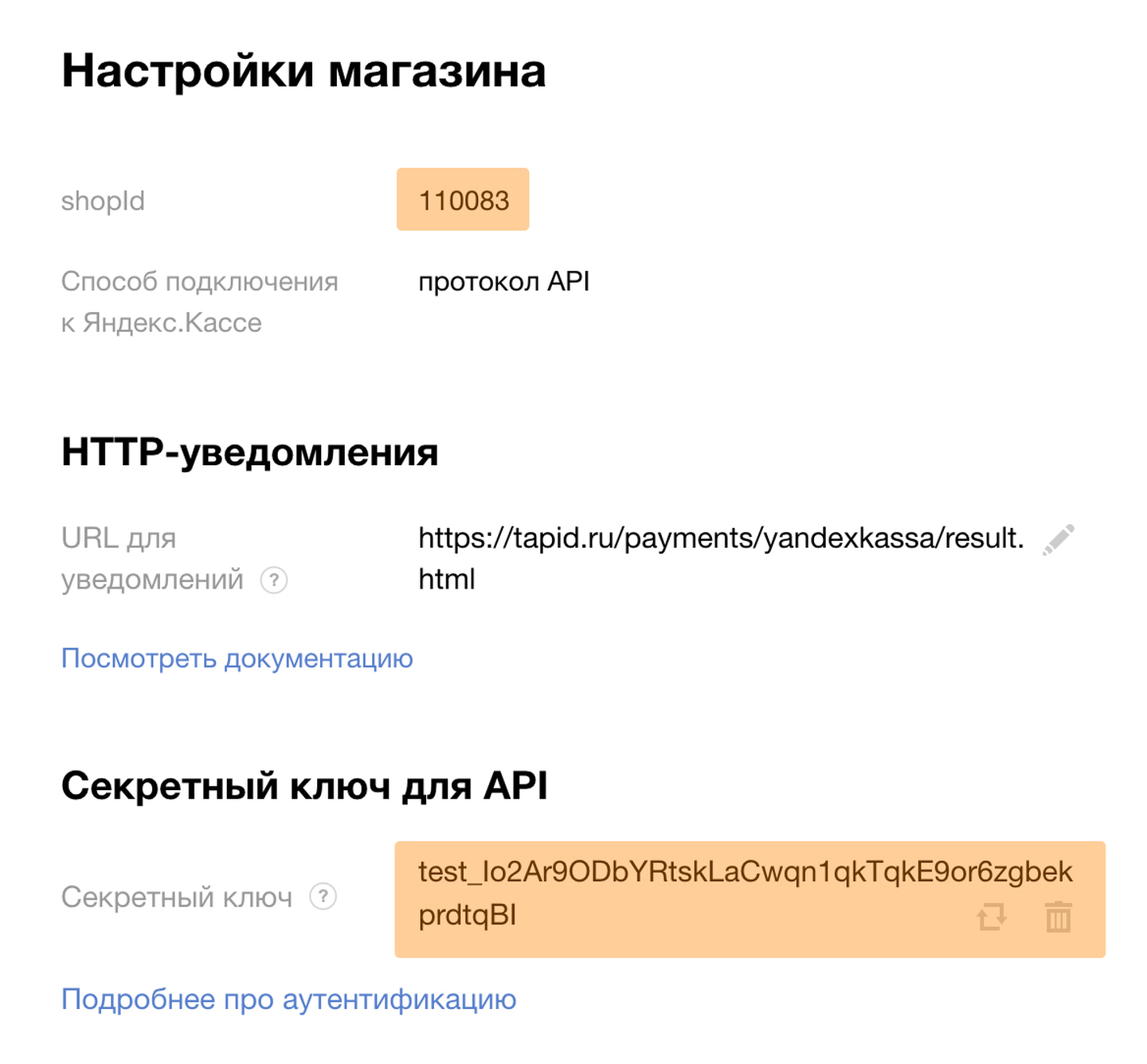 - URL для HTTP-уведомлений: https://tapid.ru/payments/yookassa/result.html