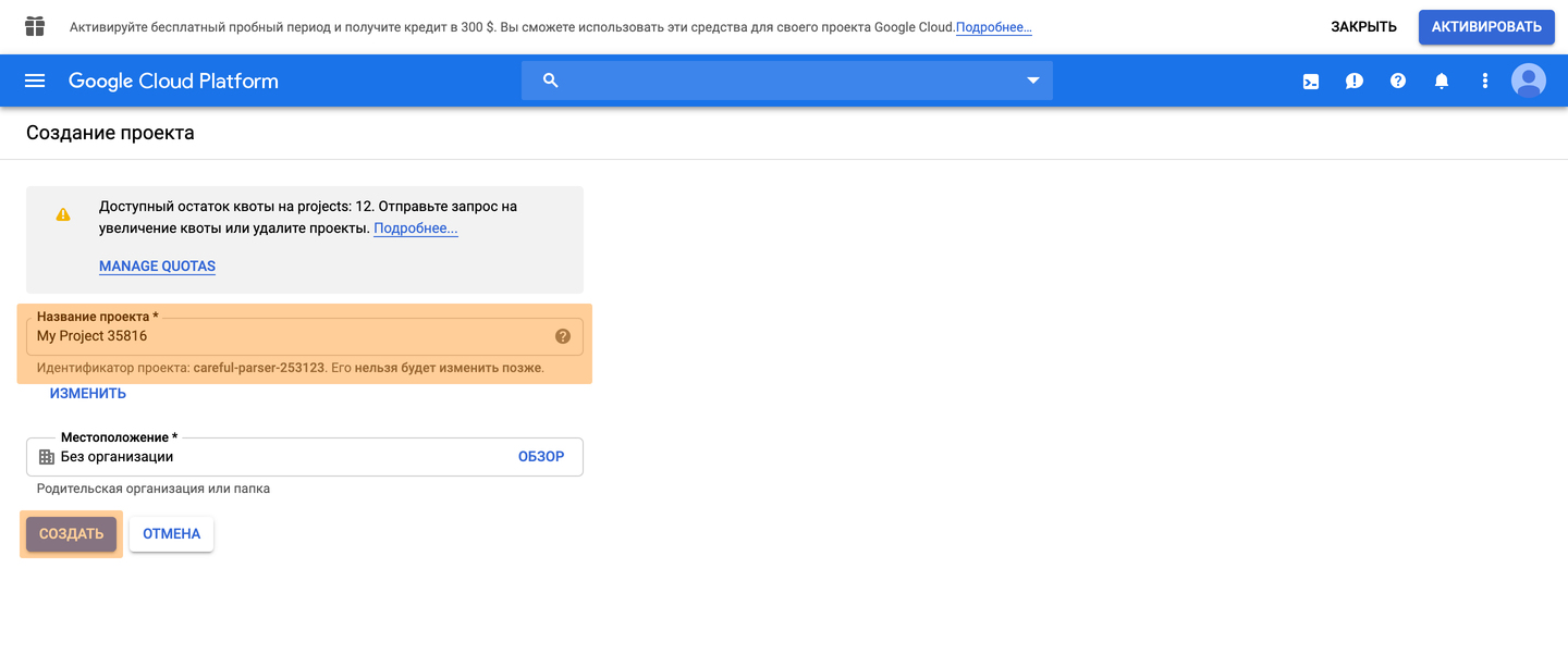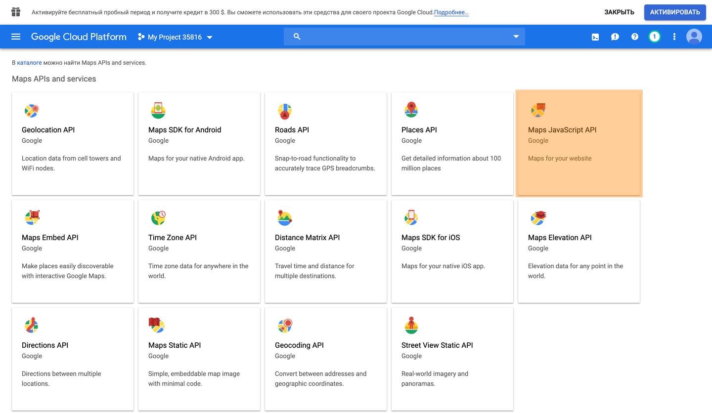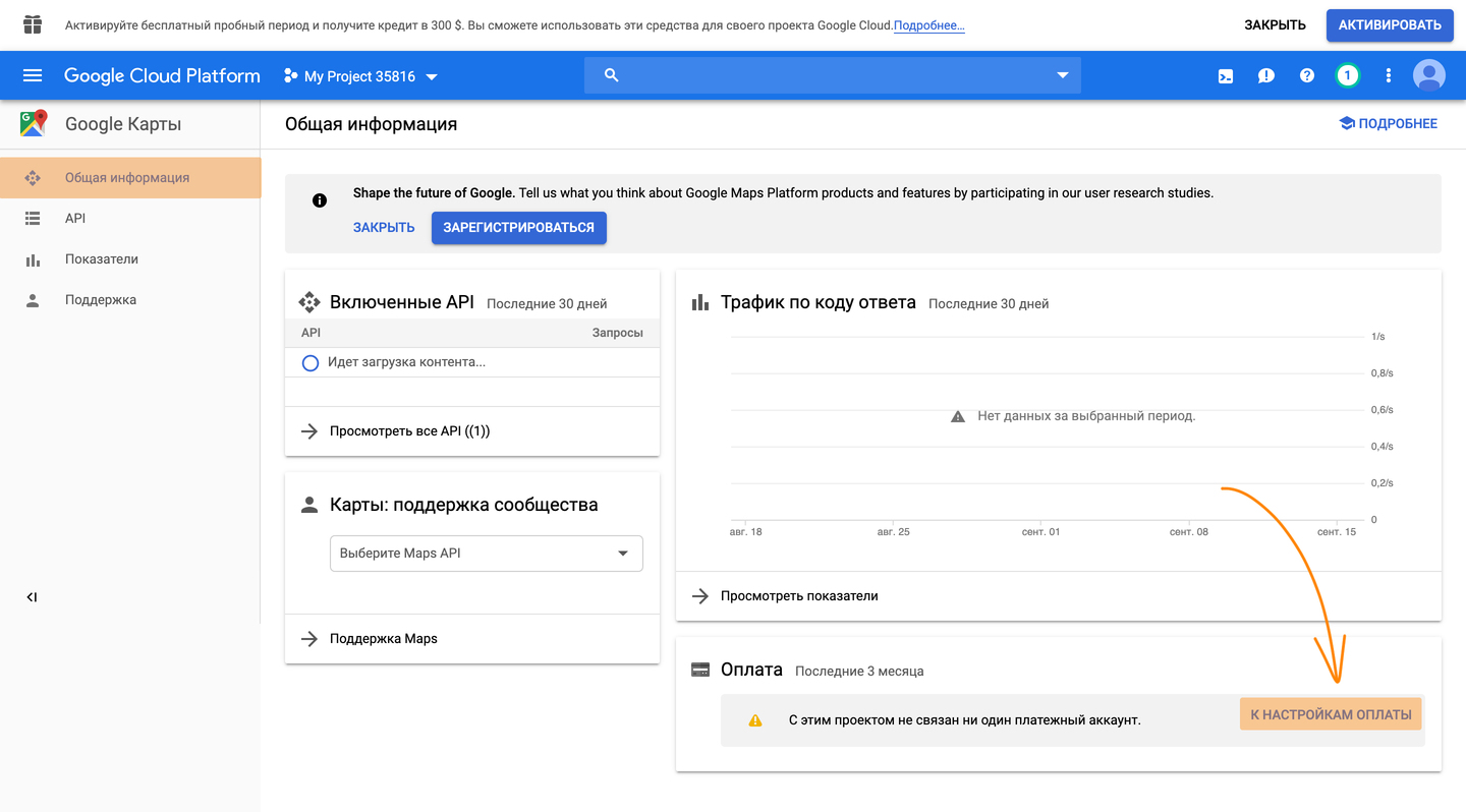 Перейдите в Google Cloud Platform по адресу: https://console.cloud.google.com/google/maps-apis/overview и создайте новый проект.
