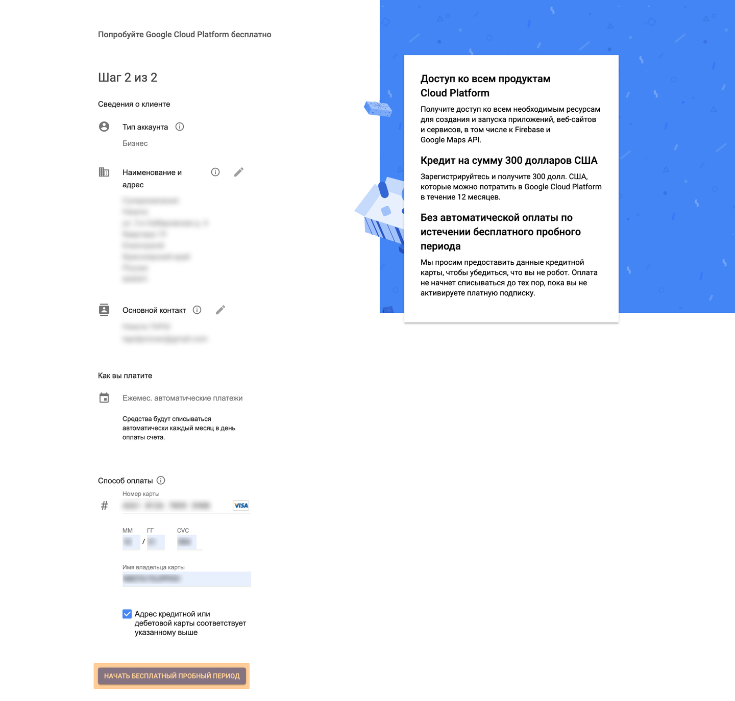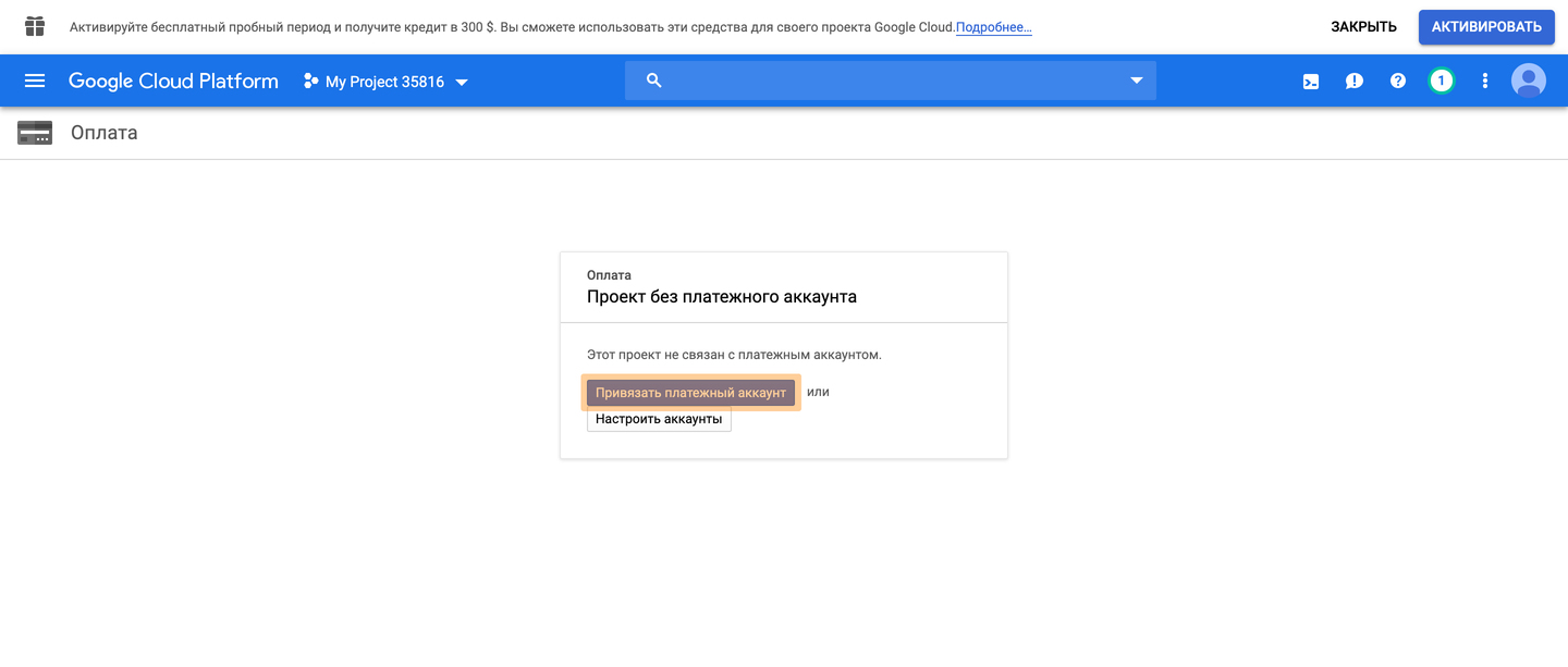Нажмите Привязать платежный аккаунт, в случае его отсутствия, Google предложит создать новый платежный аккаунт.
