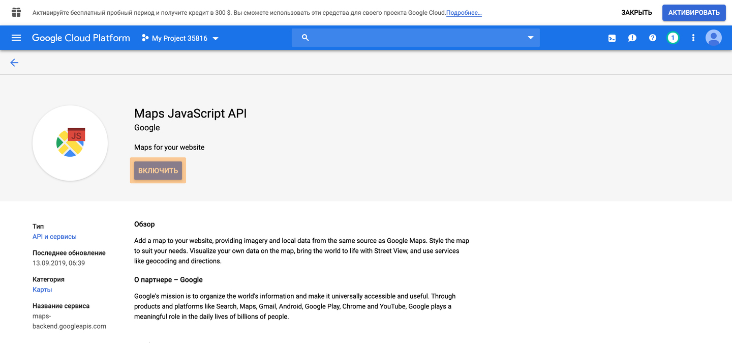 Компания Google ввела новые правила использования карт. Чтобы добавить карту, необходимо получить ключ JavaScript API Google Maps и указать его в разделе Настройки, а на стороне Google привязать платежную карту.