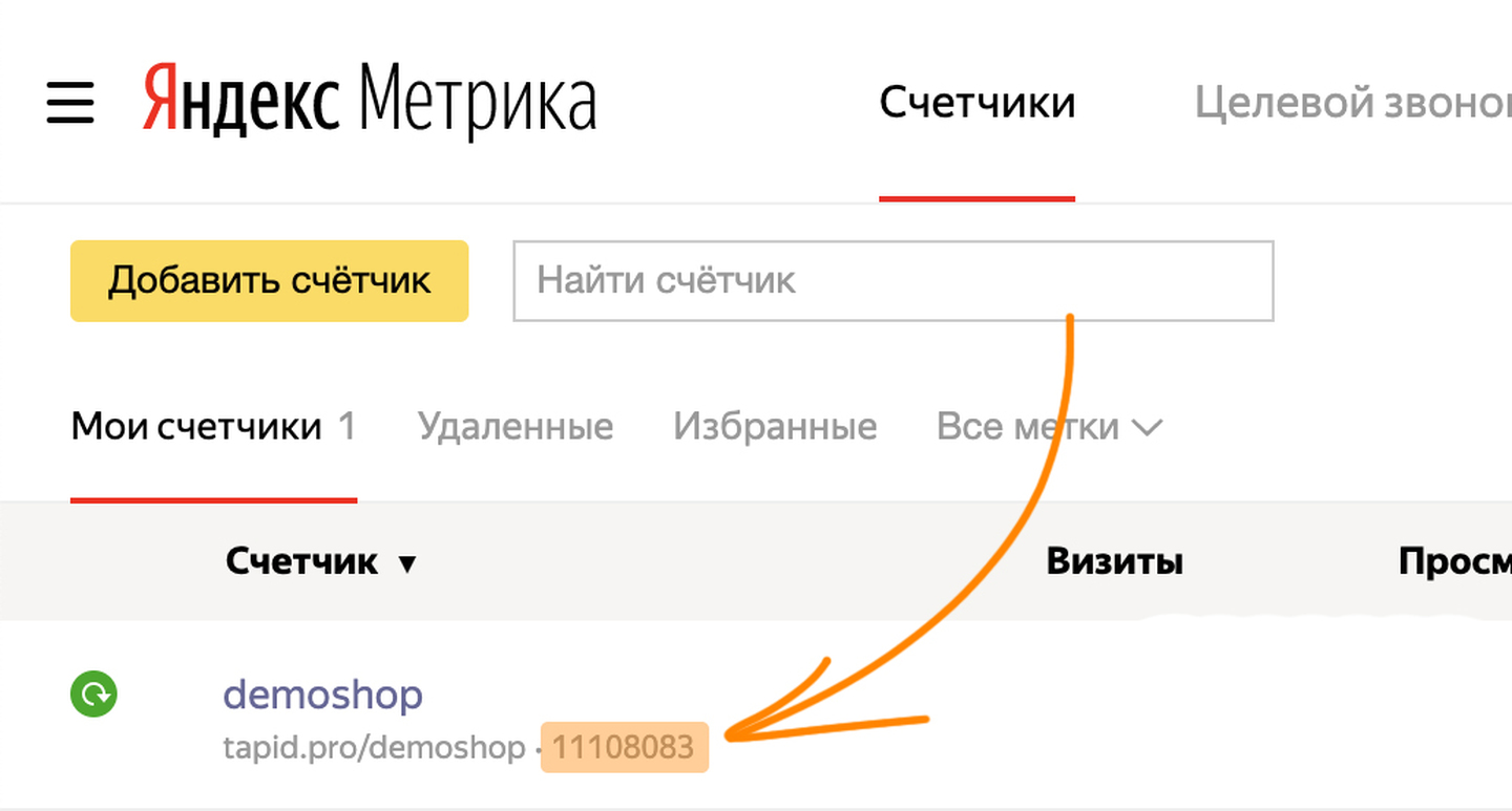 - Вернитесь в Яндекс.Метрику и нажмите на круглую оранжевую иконку рядом с названием вашего счетчика. Если вы всё сделали правильно — иконка станет зеленой.